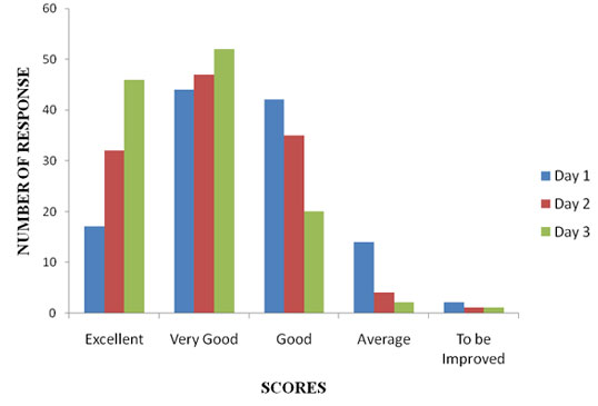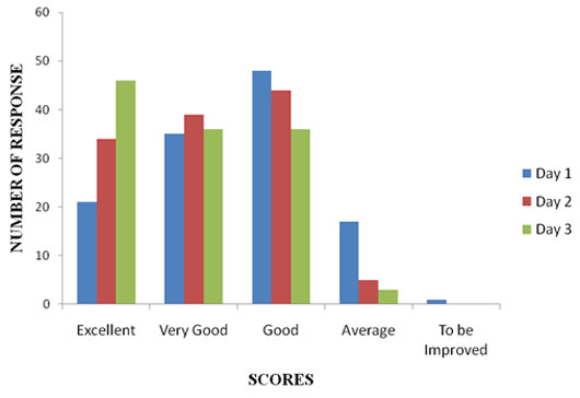 Presentations, usefulness, transport arrangements, updated information (scientific), audio arrangements are good. Cultural programmes – very excellent. Hospitality and food – Average. Accomodation – not up to the expected level. - N.Venkateswaramurthy, Professor.